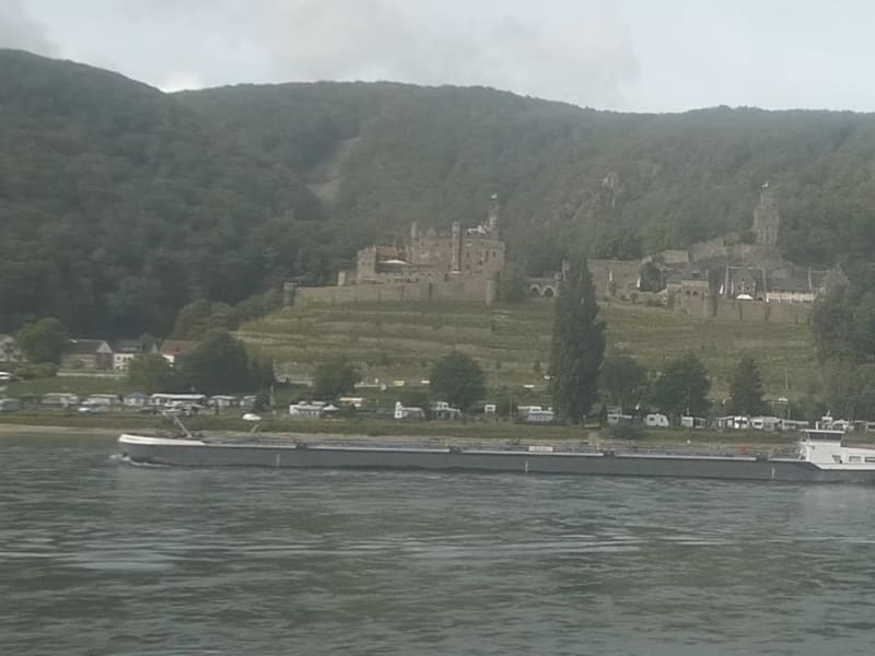 Die Burg Reichenstein befindet sich am linken (westlichen) Rheinufer bei Trechtingshausen. Die Geschichte der Burg Reichenstein liegt etwas im Dunkeln. Eine erste schriftliche Erwähnung einer Burg an dieser Stelle stammt aus dem 13. Jahrhundert, jedoch wird angenommen, dass der Ursprung der Burg im 11. oder 12. Jahrhundert liegen könnte. Nach Zerstörung, Wiederaufbau, Verfall und erneuter Zerstörung wurde die Burgruine 1899 bis 1902 wieder aufgebaut und bekam ihr heutiges Aussehen. Heute ist auf Burg Reichenstein ein Museum, ein Restaurant und ein Hotel eingerichtet. Wir hatten bei der Zugfahrt entlang des rechten (östlichen) Rheinufers einen wunderbaren Blick über den Rhein hinweg zur Burg Reichenstein.
