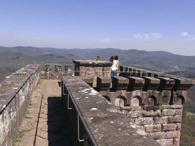 Mittelalterliche Rekonstruktion einer Burg mit den Nachbildungen der Reichsinsignien im Inneren der Festung. Wunderschöner Ausblick über das Umland und den Pfälzer Wald.