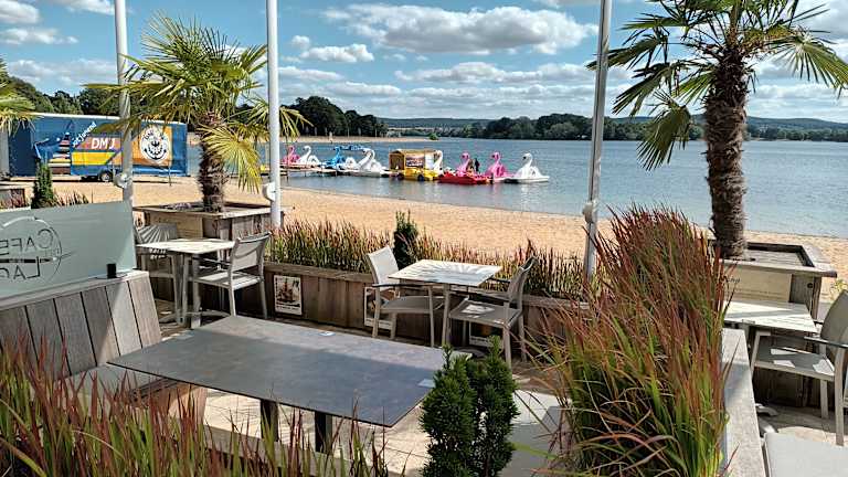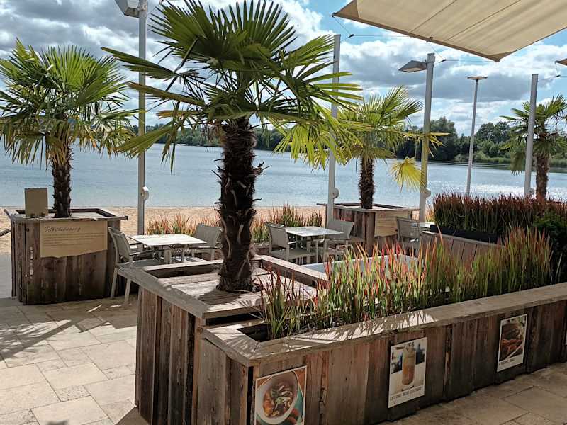 Wir hatten nach einem Ausflug von Unterwegs aus, einen Tisch reserviert. Das Cafè del Lago war zwar gut besucht, aber es waren noch einige Tische frei. Die Atmosphäre/ Einrichtung war sehr ansprechend und wir wurden freundlich von einer etwas älteren Kellnerin empfangen und zu unserem reservierten Tisch begleitet. Umgehend bekam wir die Speisekarte und für unsere kleine Enkelin einen Kinderhochstuhl. Der Getränkewunsch und die Speisen wurden aufgenommen, die Getränke kamen recht zügig an den Tisch. Nach kurzer Wartezeit wurden dann auch die Speisen serviert. Wir hatten uns für Currywurst mit Pommes (8,90€ pro. Pers.) Entschieden. Die Teller mit den Speisen sahen wirklich super aus. Da kann man nicht meckern. Sie Speisen selber, waren nicht so unsere Fall. Wir dachten immer an Currywurst kann man nichts falsch machen. Uns allen hat es nicht geschmeckt. Currywurst-Pommes- Soße voll durchgefallen. Die Currywurst war so schwabbel-wabbelig, die Pommes nicht richtig knusprig und die Soße einfach nur zum Abgewöhnen Fad. Wie in einer schlechten Pommes Bude. Den kleinen Klecks Rohkostsalat konnte man essen. Aber die Aussicht auf den Salzgitter See war gut, auch wenn es geregnet hat.