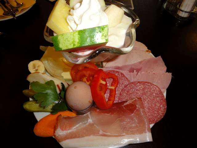 Das „Café Nordpol“ wird gerne als DIE Frühstücksadresse der Stadt Kassel gehandelt und so machte ich mich an einem Sonntagmorgen auf den Weg in die Gottschalkstraße, die sich unweit von Klinikum, Universität und Kulturzentrum Schlachthof im Stadtteil Nord befindet. Vor dem Café Nordpol gibt es eine Reihe von Tischen an der Straße und der Gastraum ist ansprechend im mediterranen Bistro-Stil eingerichtet. Trotz der frühen Stunde (und 5 Minuten vor der offiziellen Öffnungszeit!) waren sämtliche Plätze des Cafés entweder bereits besetzt oder zumindest reserviert, so dass mein kleiner Tisch in der Raummitte lediglich für das Zeitfenster einer Stunde zur Verfügung stand. Damit erging es mir besser als späteren Gästen, die hungrig weiterziehen mussten – das Café Nordpol ist schon längst kein Geheimtipp mehr... Aus der umfangreichen Speisekarte wählte ich unter 22 Frühstücks-Fix-Kombinationen den „Holzfäller“ zum Preis von 8,90 € und bekam nach einer angemessenen Wartezeit einen Korb mit Brötchen, Toast und Vollkornbrot und – Feuerwerk! – die versprochenen Zutaten: Geräucherter und gekochter Schinken, Salami, Putenbrust, frischen Kräuterquark, ein gekochtes Ei, Butter (reichlich!), allerlei Obst und ein hausgemachtes Früchtejoghurt mit frischer Ananas, Melone, Apfel, Banane und Mango in unglaublich sahniger Konsistenz. Die Portionsgröße war, selbst für Holzfäller, kaum zu schaffen, die Dekoration liebevoll und die Zutaten frisch, von bester Qualität und üppig dimensioniert. Wer es bis zum Nachmittag mit dem Frühstück nicht geschafft hat, muss im „Café Nordpol“ nicht hungern, denn nach den Frühstücksangeboten beginnt erst die eigentliche Speiseauswahl: Suppen, fantasievolle Kleinigkeiten, 11 verschiedene Salate, Kartoffel- und Reisgerichte, warme Baguettes, Omelettes, Pasta und Pizza, Aufläufe, Böreks, sowie Fleisch- und Fischgerichte stehen zur Auswahl. Allen gemeinsam ist der Umstand, dass man es im Café Nordpol praktisch nicht schafft, die "10-Euro-Grenze" zu überschreiten – die nahe Uni sorgt für ein nettes Publikum, das diese Preispolitik mit entsprechender Treue zu würdigen weiß. Bleibt anzumerken: Wer sein Frühstück gerne in der beschaulichen Atmosphäre eines Wiener Kaffeehauses einnimmt, ist im „Nordpol“ nicht an der richtigen Adresse, denn der Geräuschpegel des Bistros ist erheblich und eine „Charter-Bestuhlung“, die fraglos dem Andrang der Gäste geschuldet ist, bietet die Intimität einer vollbesetzten Tram. Im Fazit: Erstklassiges Frühstück, unkomplizierter Service und ein unschlagbares Preis-Leistungsverhältnis machen das Café Nordpol zu einer spannenden Adresse, die einen Besuch lohnt.