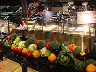 Wer in einem Möbelhaus sucht unter den vielen Angeboten, kommt an einen "toten" Punkt. Im Möbelhaus Rieger findet man diesen im oberen Stock und kann dort richtig abschalten. Beim zubereiten verschiedener Gerichte kann man zuschauen wenn die Speisen frisch bereitet werden. Natürlich mit frischem Gemüse, die kuchen allerdings werden zugekauft, schmecken aber einiger Maßen. Trotzdem macht man eine Pause bei einer Tasse Kaffee und wer mag nimmt sich zur Erfrischung ein Eis, ich kann das Eis mit Rum-Aroma empfehlen. In den Rieger Möbelhäuser gibt es keine Bedienung, hier ist SB gefragt.