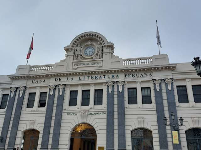 Das Kulturzentrum "Casa de la Literatura Peruana (CASLIT)" hat seinen Sitz seit dem 20. Oktober 2009 im ehemaligen Hauptbahnhof von Lima, Estación Desamparados. Das Bahnhofsgebäude wurde zwischen 1890 und 1912 hinter dem Palacio de Gobierno, ein Cuadra entfernt von der Plaza Mayor am linken Ufer des Rimac-Flusses errichtet und nach einer früher nicht weit entfernt stehenden Kirche benannt. Heute fährt von dem Bahnhof in den Wintermonaten einmal wöchentlich ein Eisenbahnzug nach Huancayo in den Anden ab, der Personen und Fracht transportiert. Bei der 12-stündigen Fahrt erreicht er eine Höhe von bis zu 4.781 Metern. Das dreistöckige Gebäude wurde nach französischen Vorbildern aus Stahlbeton errichtet. Die neoklassizistische Fassade wird durch vier dorische Säulengruppen gegliedert. Highlights im Jugendstil-Inneren sind die Haupttreppe, die Glasmalereien des Tonnendachs, die schmiedeeisernen Bänke sowie die "Paquita", eine Dampflokomotive, die ehemals den Präsidentenzug zog. Als kulturelles Zentrum bietet das Casa de la Literatura Peruana den Besuchern in 16 Räumen ein breites Programm an kulturellen Aktivitäten, sowie eine Ausstellungshalle und Bibliothek.