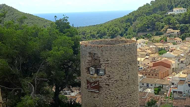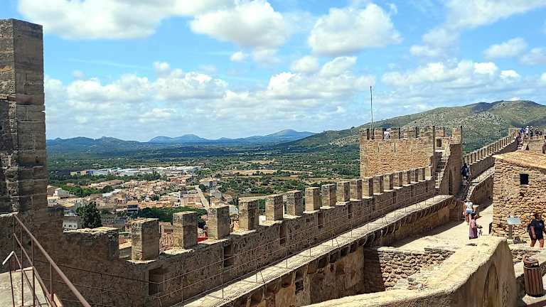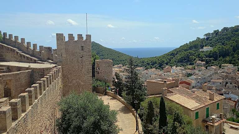 Ein ehemaliges Wehrdorf wird hier als Burg bezeichnet. Diese Burg ist noch recht gut erhalten, auch weil im Jahr 1856 das Militär die Burg verlassen hat. Der Ort liegt unterhalb der Burg, so wie das bei Burgen, die vor allen Dingen die Bevölkerung schützen mußte, üblich war. Es gibt einige Häuser die fast an der Burgmauer stehen, eine Lage die sicher früher gewährt wurde, hier hatten die Bewohner bei Gefahr wohl den kürzesten Weg in die Burg. Vom Ort gibt es einen steilen aber romantischen Weg,mehr eine lange Treppe zur Burg. Es gibt auch einen Hinweis am Turm, daß dieser in der islamischen Zeit von Mallorca, ca. 10 Meter höher war, als der jetztige Turm. Turm ist nicht zu betreten, dafür aber eine Aussichtsplattform, von welcher man bei schönem Wetter die Insel Menorca sehen kann. Im Westen dieser Aussicht sieht man eine Mauer mit 2 Öffnungen, in welchen 2 Glocken hängen. Diese Mauer ist auch gleichzeitig die Mauer, in welcher eine Etage tiefer, der Eingang zur Kirche sich befindet. Die Kirche wurde bis zum Jahr 1840 benutzt. Interessant ist auch die Zisterne, die aber nur Regenwasser beinhaltete. Das ehemalige Haus der Gouverneurs ist restauriert worden, in diesem Haus gibt es ein kleines Museum, es zeigt das Handwerk des Palmblattflechtens , sowie die Erzeugnisse.