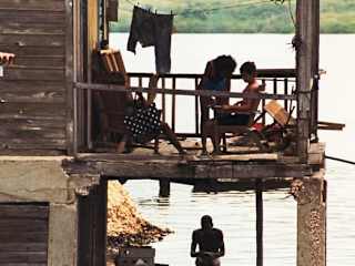 Einer der Höhepunkte in Santiago war für uns eine Bootsfahrt zur kleinen Insel Cayo Granma, die inmitten der Bucht von Santiago und nur eine kurze Bootsüberfahrt von der Festung El Morro entfernt liegt. Die Insel gehörte früher mal einem reichen englischen Sklavenhändler. Hier verbrachten vor der kubanischen Revolution oftmals die reichen Bürger von Santiago ihren Urlaub. Cayo Granma ist eine hübsche kleine Insel mit schönen Strandhäusern. Laut Reiseleiter sollen hier etwa 4000 Leute wohnen. Wir machten einem Spaziergang durch die Ortschaft. Die Bewohner der Insel waren sehr freundlich und die Kinder winkten uns aus den Häusern und am Strand zu. Angebettelt wurden wir nicht. Auch sahen wir einige Einheimische beim Angeln. Noch heute leben einige Bewohner der Insel vom Fischfang. Nach dem Spaziergang durch die Ortschaft gingen wir in ein Restaurant in der Nähe der Bucht, wo wir unser Mittagessen einnahmen. Es gab u.a. Fisch, Reis und Salat, das Essen war sehr köstlich und der Wirt des Restaurants war überaus freundlich. Vom Restaurant aus, hatte man einen herrlichen Ausblick auf die Bucht.