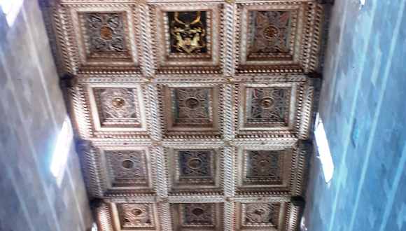 Die Kirche hat eine kunstvolle Kassettendecke