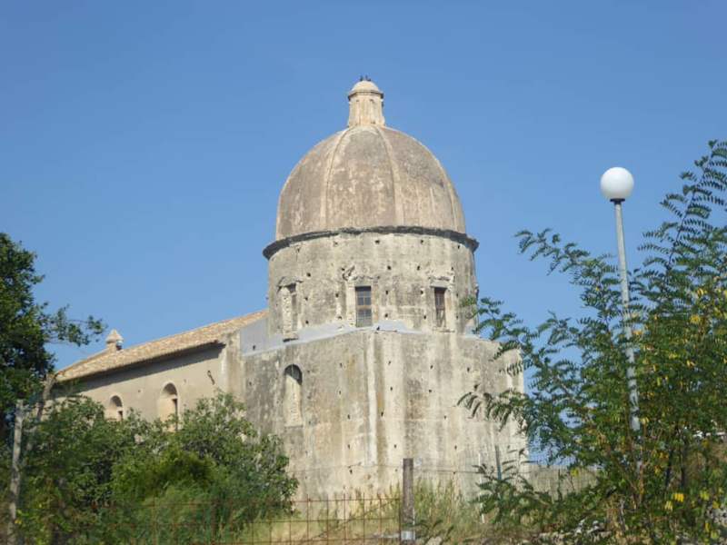 Gegenüber von unserem Hotel Michelizia befand sich die Kirche „Chiesa della Michelizia“. Natürlich wollten wir die nur etwa 5 Minuten entfernte Kirche auch mal besichtigen. Leider war die Kirche geschlossen. Der Komplex der Kirche war mehrere Jahrhunderte lang verlassen, wurde aber in den letzten Jahren renoviert. Laut einer Hinweistafel an der Straßenkreuzung finden die Restaurierungsarbeiten der Kirche Michelizia zur Zeit angeblich immer noch statt. Seit einigen Jahren erfüllt die Kirche keine religiösen Funktionen mehr, sondern ist Sitz verschiedener kultureller Initiativen. Die weit sichtbare Kirche befindet sich auf einem Hügel und wurde vermutlich Ende des 16.Jahrhunderts erbaut. Die Kirche der Michelizia in Tropea ist eine Renaissancekirche, die in zwei verschiedenen Epochen gebaut wurde. Der Ursprung des Namens ist laut eines Berichtes im Internet und unseres Reiseführers vermutlich auf seinen Gründer zurückzuführen, den wohlhabenden lokalen Kaufmann Michele Milizia, der während eines heftigen Sturms auf dem Seeweg von einer Geschäftsreise zurückkehrte. Er wurde dank eines für ihn göttlichen Lichts zum Hafen von Tropea geführt. Aus Dankbarkeit für die Rettung baute er diese Kirche an der Stelle, an der er das Licht erblickte. Der Name kommt von Michaeli Militia, das ist Kirche der Engel, von Militia San Michele Arcangelo. Laut einer Legende soll der reiche Kaufmann Michaeli Militia einen Schatz nach einer Meuterei seiner Männer irgendwo in der Kirche versteckt haben. Laut Aussage unseres Reiseleiters, soll trotz intensiver Suche, nie ein Schatz gefunden worden sein. Es wurde nach einer Suchaktion ein verborgenes Zimmer gefunden, dass überwiegend leer war. Es befand sich nur ein in der Mitte befindlicher mit Staub, Spinnweben und Ruß gehüllter Stuhl. Auf dem Boden und unter dem Stuhl lagen verstreut Überreste menschlicher Knochen.