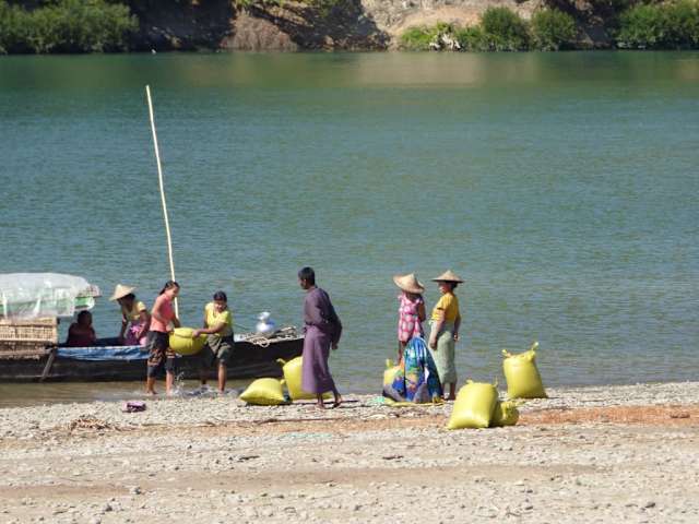 Diese 2. Myanmar Rundreise hatten wir im Vorfeld lange mit unserer Mimi geplant. Ein Highlight auf unserer Reise war der Besuch der Chin Dörfer. Sieht man die Padaung Frauen (Giraffenfrauen) schon an Orten wie dem Inle See, muß man, um zu den "Spinnenfrauen" zu gelangen eine etwas längere Anfahrt in Kauf nehmen. Am frühen Morgen stand in Mrauk U zuerst ein Marktbesuch an. Hier kaufte ich mir 2 Longyis m. d. trad.Muster aus Rakhine, bezahlt habe ich dafür 10,-€ mit Umnähen. Unsere Reiseleiterin Linn kaufte noch Kekse für die Kinder in den Dörfern. Vorbei an Resten der alten (ehemals 30 km) Stadtmauern und 3 Pagoden gelangten wir zum Leymyo Fluss. Um 10:15 Uhr war die Abfahrt auf dem Leymyo Fluß, einem Nebenfluss des Kalandan Flusses. Wir haben mit Linn ein Boot für uns alleine. Es geht vorbei an Reisfeldern, Wasserbüffel, kleinen Hütten der Bauern die Gemüseanbau betreiben, Fischern und Männern und Frauen die hüfttief im Wasser stehen und Steine rausfischen um diese dann zu verkaufen. Am Ufer waschen Frauen ihre Wäsche. Nach 2 Stunden Fahrt durch diese wunderschöne Landschaft biegen wir in einen kleinen Seitenarm ab. Hier besuchen wir ein kleines Chindorf, mit nur noch wenigen älteren Frauen, die diese trad. Tätowierungen im Gesicht tragen. Diese Tätowierungen trugen die Frauen, damit sie nicht entführt wurden. Die jungen Frauen tragen diese Spinnentätowierungen nicht mehr. Auch die großen Ohrlöcher findet man bei jungen Frauen nicht mehr. 4 "Spinnefrauen" , die auch die trad. großen Ohrlöcher haben, kommen und laden uns zum Tee ein. Alle sind sehr freundlich. Auf die Frage, ob die selbstgewebten Schals, die auf der Leine hängen verkäuflich sind, kommen wir ins Geschäft und ich kaufe ihnen einen Schal ab für 9000 Kyt. Wir besuchen die Dorfschule. Sie wurde von Italienern gegründet. Von einem Lehrer werden wir hineingebeten um uns den Schulunterricht anzusehen. Hier werden Kinder in versch. Altersstufen von 3 Lehrern unterrichtet. Linn verteilt die zuvor gekauften Kekse. Wir geben die mitgebrachten Stifte dem Lehrer und eine Spende für die Schule. Auch die mitgebrachten Kinderkleider, die wir im Dorf verteilen, finden große Begeisterung. Pfeffer, der z. Trocknen ausliegt, kaufen wir den Dorfbewohnern ab. Linn, die hier die Frauen kennt, bringt einer älteren Chinfrau Medikamente mit. Wir fahren weiter zum nächsten Chindorf. Man sieht, daß hier beim letzen Hochwasser Teile des Ufers abgebrochen sind. Hier in diesem Dorf stehen versch. Chinfrauen Spalier und verkaufen selbstgewebte Schals in verschiedenen Farben. Eine ältere Frau bittet uns in ihr Haus, in dem sie mit Tochter und Enkel wohnt. Sie führt uns den Webstuhl vor und kaufe ihr dann einen Schal für 10.000 Kyt. ab. Auch hier sehen wir uns die Dorfschule an. Nach 2 Std. Bootsfahrt zurück, durch diese wunderschöne Flußlandschaft wird uns dieser Tag unvergesslich in Erinnerung bleiben mit diesen freundlichen Menschen. Man sollte sich unbedingt einen Guide nehmen, dieser kennt die Menschen, spricht die Sprache, denn einfach auf eigene Faust in den Dörfern einfallen ist bestimmt nicht so gerne gesehen.
