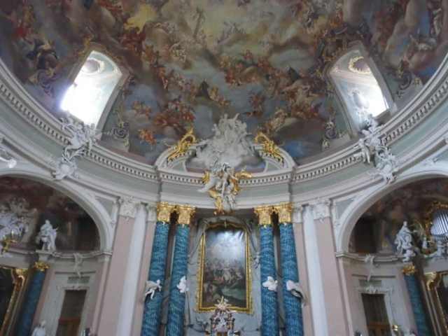 Neben dem grossen Dom in Münster und der St. Lambert Kirche übersieht man leicht ein Juwel, die Clemenskirche. Unweit des Rathauses mit dem berühmten Saal, in dem der Westfälische Frieden geschlossen wurde, liegt die Clemenskirche. Es ist ebenso wie das Schloss ein Barockjuwel. Es ist ein Rundbau mit einem separaten Turm. Meist ist die Kirche geschlossen, aber – so wie es uns erging im Juni 2017 – konnte man in den Vorraum treten und den Innenraum der Kirche durch ein Gitter betrachten. Kuppel und Seitennischen sind wunderbar bemalt – vorherrschend in Blau – ebenso sind 4 grosse Säulen neben dem Altar in leuchtend Blau. Die gemalten Szenen kann man gut sehen – leider fehlte jedoch jegliche Information. Vielleicht schaffen wir es bei unserem nächsten Besuch hier noch einmal vorbei zuschauen ohne dass uns ein Absperrgitter hindert in den Kirchenraum zu treten. Unser Tipp: Gleich in der Nähe befindet sich das Touristenbüro der Stadt Münster, und wenn Sie sowieso dorthin gehen werden, dann vergessen Sie nicht der Clemenskirche einen kurzen Besuch abzustatten – es lohnt sich.