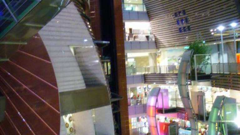 Das riesige Einkaufszentrum befindet sich in einer Kugel, hat etwa 12 Levels mit Shops, dazu zwei Geschosse mit Restaurants und ein Multiplex-Kino. Wie überall in Taiwan ist alles nur in chinesisch beschriftet - beim Essen muss man sich also in erster Linie auf optische Aspekte verlassen und einfach auf das zeigen, was man will. Es gibt hier sehr viele exklusive Läden mit allem was das Herz begehrt, natürlich auch viele internationale Marken und Designer - natürlich auch nicht wirklich günstig. Die vielen kreuz und quer durch die Kugel verlaufenden Rolltreppen sehen faszinierend aus.