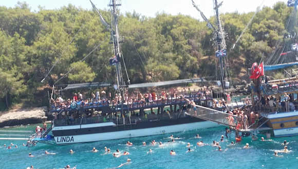 Also erstmal vorweg Delphine gab es leider nicht zu sehen(wird aber auch nicht spezifisch mit geworben) ,dafür jede Menge Fische beim Tauchgang an der Lagune und auf dem Weg zur Lagune jede Menge Riesen Schildkröten. Man sollte diese Fahrt nicht im Hotel sondern direkt vor Ort am Strand buchen (ca.20 Euro inkl. Essen) dort kommt man billiger weg. Anlegestation in Colakli-altes Piratenschiff.