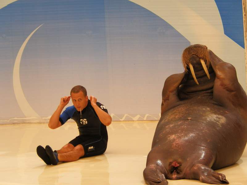 Es ist schwer es zu beschreiben...ich versuche es ... Wir hatten das Glück - das wir Freikarten für das Delphinarium bekommen haben - hätten wir die ca 25 Euro Eintritt zahlen müssen, wäre ich enttäuscht gewesen. Was wird geboten - eine Standard Showeinlage mit zwei Walen, eine Standardshow mit einem Walross und eine Showeinlage mit 2 Delphinen. Herausragend und lustig war die Show mit dem Walross "Silver" - die hatte was .... alles Andere .... naja... dazwischen ( in einer 60Minuten gesamtshow ) werden noch 10 minuten Pause von gemacht um getränke zu verkaufen und um Fotos für teures Geld machen zulassen.... Also ich weiss das man irgendwie an Geld kommen muss um die Tiere durchzufüttern - aber man muss es auch nicht so offensichtlich machen das man dran riechen kann "abgeledert" zuwerden ... Sicherlich wird man zu nichts gezwungen dort .... aber stets hat man den Eindruck das man den Touristen das Geld entlocken will . Vielleicht habe ich eine Eigensinnige Einstellung dazu ... Geschmäcker sind verschieden ! Es ist nicht so das man "Käse" zusehen bekommt - aber ich persönlich habe mehr erwartet . Sicherlich ist es wenn man Kinder hat wieder was anderes .... also Fazit .... 50% Ja - 50% Nein was die Empfehlung angeht