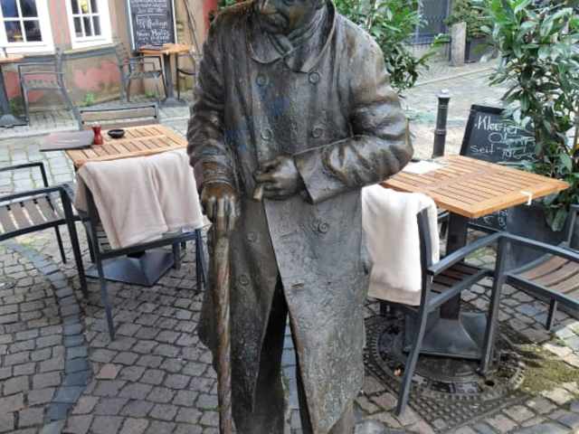 Einem echten Bremer Original wurde im Schnoor ein Denkmal gesetzt, welches jeden Tag als Selfie-Motiv herhalten muss und dabei an einen kauzigen und vom Schicksal gebeutelten Mann erinnert, dessen richtiger Name selbst eingesessenen Bremern eher unbekannt sein dürfte: Jürgen Heinrich Keberle. Geboren am 18. April 1835 an der Tiefer und später im Schnoor wohnend, fiel Keberle in jungen Jahren während seiner Lehrlingszeit aus einer Dachluke, was ihm nicht nur einen leichten Hirnschaden, sondern auch ein steifes Bein einbrachte. Zeit seines Lebens humpelnd und das Bein nachziehend, kam er zu seinem Spitznamen, unter dem Keberle in Bremen noch heute bestens bekannt ist: „Heini Holtenbeen“. Als Dienstmann nahm Heini Holtenbeen (der übrigens kein Holzbein hatte) verschiedene Gelegenheitsarbeiten an und fiel insbesondere durch seine markante Kleidung auf: Abgetragener Mantel, Stock und Melone galten als seine Markenzeichen und häufig war er mittags vor der Börse am Marktplatz zugegen, wo er eintreffende Kaufleute begrüßte und deren angerauchte Zigarren entgegennahm, da in der Börse bereits Rauchverbot herrschte. Einen guten Teil seines Lebensunterhaltes erbettelte sich Heini Holtenbeen, der zwar nach Geld fragte, dies aber grundsätzlich nur als Darlehen verstanden wissen wollte. Mit seinem plattdeutschen Spruch: „Segg mal, kannst mi nich’n halwen Groschen lenen, ick schrief dat in min Hauptbook in“ (auf Hochdeutsch: „Sag mal, kannst Du mir nicht einen halben Groschen leihen, ich schreib das auch in mein Hauptbuch ein“) wurde Heini Holtenbeen stadtbekannt. Zurückzahlen konnte er seine „Darlehen“ freilich nicht, sondern starb 1909 völlig verarmt in der städtischen Nervenheilanstalt im Bremer Osten und fand seine letzte Ruhe auf einem Bremer Friedhof. Das Denkmal für „Heini Holtenbeen“ schuf der Künstler Klaus Homfeld im Jahr 1990 – die Bronzefigur an der Holzpforte beweist Respekt vor dem Mann, der Zeit seines Lebens Ziel des Spottes war und sich trotzdem einen bescheidenen Nischenplatz in der Hansestadt erkämpft hat.