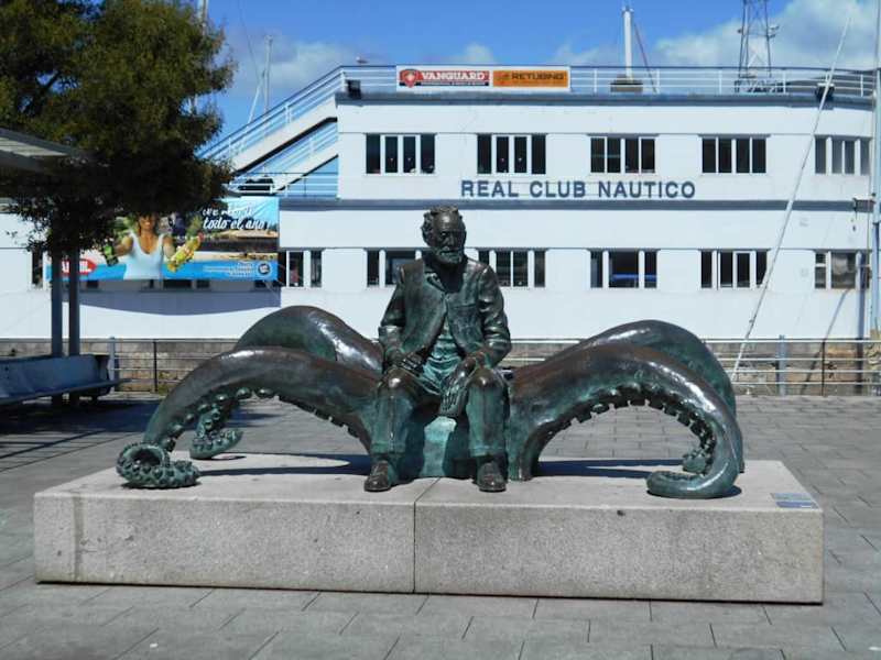 In seinem Buch „20000 Meilen unter dem Meer“ widmet Jules Verne der Bucht von Vigo ein Kapitel und besuchte die Stadt auch einige Jahre, nachdem er das Buch geschrieben hatte. In Vigo fand Verne damit eine bedeutende Anhängerschaft, es gibt bis heute eine „Verne-Gesellschaft“, deren Mitglieder Journalisten, Künstler und Schriftsteller sind, die das Andenken an Jules Verne bewahren. Nach Jules Vernes Tod im Jahr 2005 wurde auf private Initiative das Denkmal am Yachthafen für ihn errichtet. Es zeigt den Schriftstelle auf den riesigen Tentakeln eines Kraken sitzend.