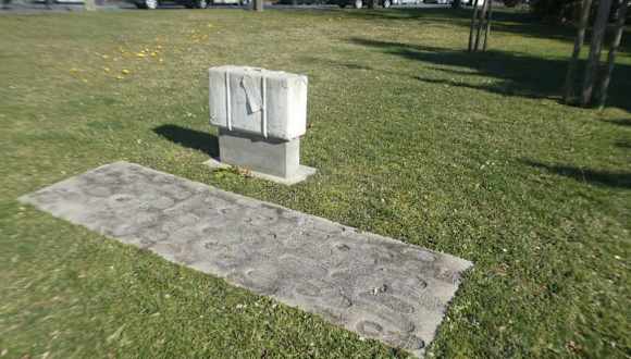 Unweit vom Falterturm liegt Richtung Bahnhof Kitzingen der Rosengarten. Hier im Rosengarten steht die Nachbildung eines Koffers aus Beton. Davor ist ein Betonweg mit Fußspuren angelegt. Dieses „Kofferdenkmal“ erinnert an die Deportation der jüdischen Bevölkerung aus Kitzingen und Umgebung, welche zwischen 1941 und 1944 in die Konzentrationslager und Vernichtungslager über den Bahnhof Kitzingen und dem Bahnhof Würzburg verschleppt wurden. Auch in vielen anderen Orten in Unterfranken stehen unterschiedliche Gepäckstücke, die an diese schrecklichen Vorgänge erinnern. All diese Gepäckstücke in den unterfränkischen Orten sind Teil des Zentraldenkmals „DenkOrt Deportationen 1941-1944“ in Würzburg. Die Gepäckstücke in Würzburg sind alle mit Ortsbezeichnungen versehen – und in den meisten dieser Orte findet man die jeweiligen Gegenstücke, so auch hier in Kitzingen. Wenn Sie in Kitzingen sind, so sollten Sie nach Möglichkeit auch einmal zu diesem Denkmal DenkOrt Deportation 1941-1944 in den Rosengarten gehen und all den NAZI-Opfern gedenken.