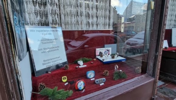 Wer Probleme mit seiner Armband-Tisch-Kuckucks-Pendel-Taschenuhr hat, den kann ich in Fürth den Laden „Die kleine Uhrmacherei“ sehr empfehlen, das Sagen hat die Frau im Laden und ihr Mann unterstützt sie hierbei, wo es nur geht. Vormachen kann man ihr nichts, sie erkennt Fälschungen sofort, die Reparaturen sind sehr kostengünstig und nach einigen Tagen erledigt, hier habe ich mir auch für meine Taschenuhr die passende Kette besorgt. . Adresse: Lessingstraße 25 90763 Fürth Telefon: 0911 9716650
