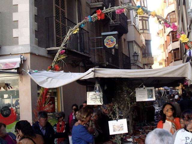 Dijous Bo in Inca Es ist der größte Herbstmarkt auf Mallorca mit 200 000 Besucher im November 2014. Für Donnerstag den 13.11.2014 hatte AEMET ( spanischer Wetterdienst ) strahlenden Sonnenschein voraus gesagt. Also haben wir uns zum Dijous Bo, dem guten Donnerstag nach Inca aufgemacht. Noch vor dem Frühstück sind wir mit dem 3er Bus von Illetas nach Palma zur Plaza de Espana gefahren. In der Estacio Intermodal am Extra Schalter, nur für die Fahrt nach Inca, haben wir unsere Fahrkarten gekauft. Ida y vuelta € 6,10 pro Person für eine halbe Stunde Fahrtzeit. Der tib Zug ist sauber und mit bequemen Sitz-und Stehplätzen ausgestattet. Das Wetter war wie vorhergesagt, Sonne, angenehm warm, ein paar Wolken. In Inca angekommen haben wir uns erst mal eine Bar für das ausgefallene Frühstück gesucht. Es war um 11,00Uhr schon ziemlich voll. Dann hat es doch geklappt, gegenüber dem Denkmal für die Schuhmacher fand sich noch ein Plätzchen in der Sonne. Es war nicht das erste Mal, dass wir den guten Donnerstag besucht haben. Die Marktstände ziehen sich vom Bahnhof aus durch die Fußgängerzonen der Stadt. Aber auch die Straße die nach Lluch-Caimari-Selva führt ist bis zur Plaza Bestiar voll mit Ständen. Auf dem Platz werden verschiedene Tiere ausgestellt: schwarze Schweine, Schafe, Esel, Enten, Hühner und einiges mehr. Zum größten Teil sind es einheimische Rassen wie die Esel, die in den Gebirgen der Tramuntana leben und dort dafür sorgen, dass das Unterholz nicht überhand nimmt. So werden die gefürchteten Waldbrände vermieden. Wenn nicht gerade so ein Schlauer in Andratx nach dem Grillen die Asche in den Garten kippt. 2013 sind dabei ca. 2300 ha Wald und einige Häuser vernichtet worden. Es gibt auf dem Markt alles, einheimische und fremde Händler und Firmen, verschiedene Schulen haben Stände mit selbst gebackenem Kuchen, große Stände mit Oliven-Käse-Wurst-Pilze-Schinken-Nüsse und Bonbons. Bekleidung aller Art, Kunsthandwerk, Stände der verschiedenen Medien ( Radio, Fernsehen und Zeitungen) von Mallorca und natürlich "Mado Pereta". Ein beliebter Komiker mit spitzer Zunge in Frauenkleidung, er/sie spricht katalanisch/mallorqui, wir verstehen nichts! Es ist trotzdem sehr lustig ihm zuzuschauen. Die Feuerwehr macht kurze Vorführungen und Musik gibt es auch. Es war wieder ein schöner Tag, wir haben lecker gegessen und viel gesehen.