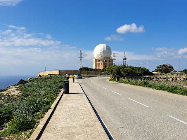 … und somit hatte ich nie die Absicht, einem Klippenrand nahe zu kommen, als ich mich für eine Fahrt zu den Dingli Cliffs entschloss. Ich habe ab Valletta den Bus 52 oder 53 genommen (weiß ich leider nicht mehr). Es ging über Mdina / Rabat nach Dingli bis zur Endhaltestelle. Ab dort bin ich die Straße hoch zur Küste gelaufen (war gut ausgeschildert) und bei einem Posten für Küstenüberwachung angekommen. Auf einem Schild war zu lesen „Coastal Surveillance Troop / Dingli Post / CIS Company 4 Regt AFM“. Ob es dort auch heute noch eine Küstenüberwachung gibt, weiß ich nicht. Irgendwie erschien es mir seltsam, da ich dort nicht nur viele Schatten suchende Schafe sah sondern auch riesige Ziegenböcke. Einen Küstenüberwachungsposten stelle ich mir eigentlich anders vor. Ich bin dann die Küstenstraße hoch Richtung Observatorium gegangen, habe aber kurzfristig eine Pause in einem sympathischen kleinen Café eingelegt – ist nicht zu verfehlen. Dort gab’s Kaffee / Tee und viele Kuchensorten. Ich habe mich auf eine Cola beschränkt. Die Preise waren recht zivil. Kurz nach dem Observatorium kam dann auch ein Teil der Klippen in Sicht. Sie sind beeindruckend, aber – wie schon geschrieben – mir reicht es, sie aus einer gewissen Entfernung zu betrachten. Anschließend bin ich noch weiter in Richtung Klippen bis zur kleinen Kapelle der Santa Marija Maddalena gelaufen. Dort habe ich kehrt gemacht, bin zurück nach Dingli und habe mir ein wenig die Stadt und den Friedhof Mater Dolorosa angesehen. Es war insgesamt ein sehr schöner Spaziergang entlang der Küste – strahlend blauer Himmel, wunderbar ruhig, kaum Besucher unterwegs. Sehr zu empfehlen.