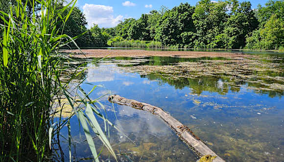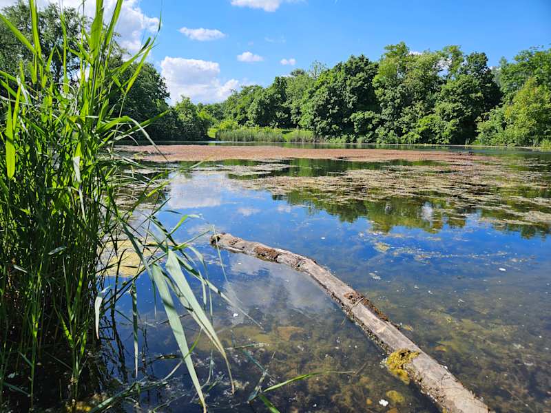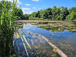 Vielseitiger Park mit Teich und Spielpaltz
