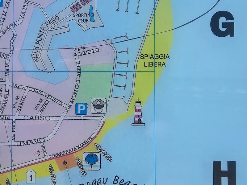 Bei meinem Besuch Anfang Mai 2024 sah der Hundestrand an der Via Lungomare Marin nahe des roten Leuchturmes so aus wie eben ein normaler Strand mit Sand. Bei genauerem Hinsehen bemerkt man jedoch ein paar vorbereitete in den Sand gesteckte Stützen für die Sonnenschirme. Vermutlich war die Hundesaison noch nicht eröffnet. Bei einem Blick in die Webseite der „Doggy Beach“ wird man auf einen Hundestrand „de Luxe“ hingewiesen und die Bilder versprechen wirklich einen komfortablen Strandaufenthalt für Hunde und deren Herrchen oder Frauchen mit Umkleidekabinen, klassische Stationen, Dog-VIP-Stationen mit Dach, Feldbett für den Hund, Gehege oder auch Dog-De-Luxe-Stationen mit Sonnenliegen mit Dach und Feldbett für den etwas größeren Hund da das Gehege 1,30 m hoch ist. Kostenlose Hundeduschen oder Vernebler für die Hunde an heißen Tagen usw. Ein Blick auf die Webseite lohnt sich. Webseite: https://www.doggybeachlignano.com/ Adresse: Lungomare Marin, 33054 Lignano Sabbiadoro UD, Italien