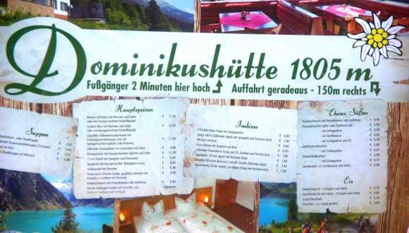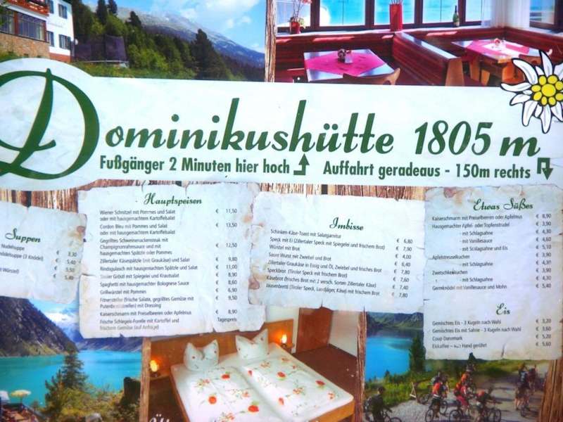 Wer beim Bergrestaurant nicht Einkehren möchte, kann zu Fuß oder auch mit dem KFZ möglich (was quatsch wäre) zur Dominikushütte laufen die vom Parkplatz gerade mal zwei Minuten entfernt liegt, jedoch sollte hierbei gutes Schuhwerk nicht fehlen, da gerade beim Aufstieg ein Bachlauf ist. Die Dominikushütte liegt dann genau auf 1.805 Höhenmeter. Ich finde es ist ein sehr gut geführtes Restaurant, wirklich eine Alternative zu den anderen vor Ort und die Konkurrenz belebt das Geschäft. Das Speiseangebot umfasst wirklich alles was der Wunsch der Gäste enspricht und die Preise passen auch. Tolle freundliche Bedienung, Service super und finde bester Blick auf dem Stausee selbst da die Hütte höher liegt, weiter Wandermöglichkeiten (Grad sehr schwer!) können unternommen werden, weitere Höhen ca. 2.900 Meter. Internet: www.dominikushuette.at/Wanderer.htm