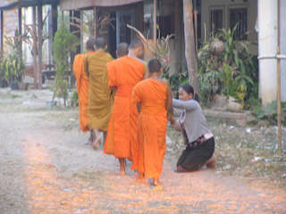 Don Khong ist eine Mekong Insel im Gebiet der4000 Inseln.Früh aufstehen und den Sonnenaufgang mitzuerleben ist eines der nachhaltigsten Erlebnisse. Kurz nach dem Sonnenaufgang beginnen die Mönche ihre Gang,die Familien waschen sich gemeinsam mit den Wasserbüffeln im Mekong und die Frauen gehen zum Markt.