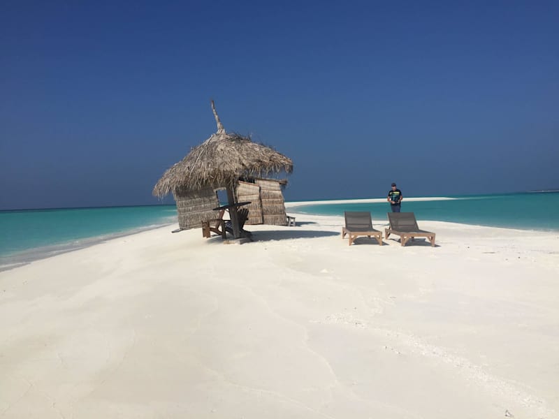 Dieser Ausflug wir auf der Malediveninsel Kuredu angeboten. Er ist mit 80$ pro Person zwar recht teuer, aber es ist ein einmaliges Erlebnis. Wir wurden mit einem kleinen Speedboot zu dem unbewachsenen kleinen Eiland gebracht. Ausgestattet wurden wir mit Softdrinks, Sandwiches, Kaffee, Tee und Badetüchern. Auf der Insel steht eine kleine Hütte und zwei Sonnenliegen mit Sonnenschirm. Wenn der Taxibootfahrer wieder weg ist, hat man diese Insel für sich. Traumhafter Sand und natürlich traumhaftes türkises Wasser. Über eine Sandbank kann man bis zu einem schönen Riff laufen und dort schnorcheln. Also: Auf keinen Fall die Schnorchelausrüstung vergessen! Für Notfälle bekommt man noch ein Mobiltelefon, mit welchem man auf Kuredu anrufen kann.