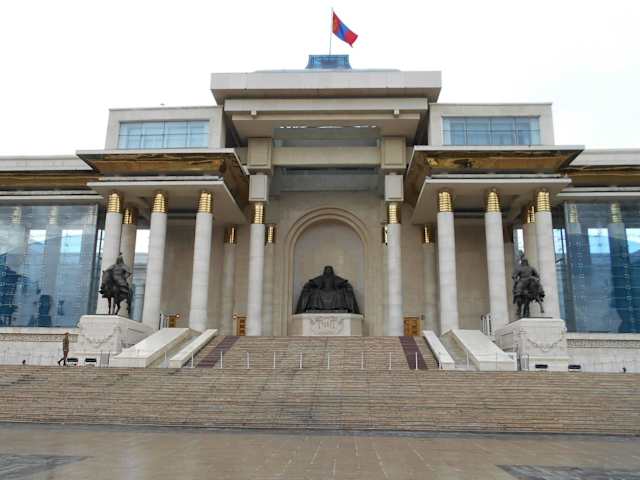 An der Nordseite des Sukhbaatar Platzes, direkt vor dem Parlamentsgebäude, wo vorher eine dem Lenin-Mausoleum in Moskau nachempfundene Begräbnisstätte für die mongolischen Helden des 20. Jahrhunderts Sukhbaatar und Choibalsan stand, wurde 2006 anlässlich der 800-Jahr-Feiern zur Reichsgründung durch Dschingis Khan ein neues Monument errichtet. In der Mitte thront Dschingis Khan, der von 1206 bis 1227 als Großkhan der Mongolen regierte. Seine Statue wird flankiert von den beiden Reitersoldaten Boruchu und Mukhlai, die den Eingang bewachen. An der Westseite des Monuments sitzt Ögedei Khan, Dschingis Khans dritter Sohn, der nach dem Tode seines Vaters von 1229 bis 1241 als zweiter Großkhan über das Mongolenreich herrschte. An der Ostseite sitzt Kublai Khan, ein Enkel Dschingis Khans, der von 1260 bis 1294 ein bedeutender mongolischer Herrscher und gleichzeitig Kaiser von China und Gründer der Yuan-Dynastie war.