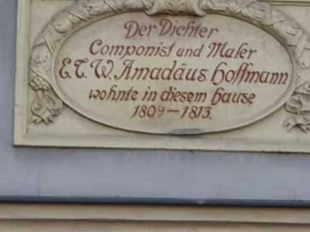 Das Wohnhaus des Schriftstellers, Komponisten und Zeichners E.T.A. Hoffmann findet man am Schillerplatz und über dem Eingang groß und sichtbar zu sehen. Das Haus selbst ein Traum, heute noch bewohnt, er selbst wohnt dort in der Zeit von 1809-1813. . Adresse: Schillerplatz 26 96047 Bamberg