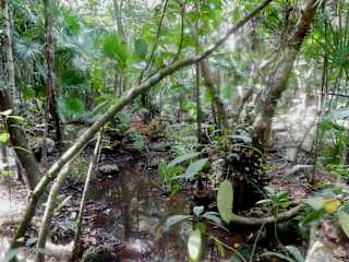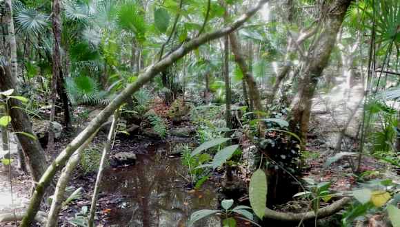 Diesen Ausflug haben wir im Hotel Akumal Bay Beach & Wellness Resort bei Karsten gebucht. Wir wählten wieder die Taxianreise , der Eintritt in den Ecopark pro Person US 79,-- inklusive Ausrüstung und Mittagessen mit Getränke war ja nicht gerade billig. Es sind in Mexiko allgemein die Ausflüge teurer als sonst wo. Die Führung durch den unterirdischen Fluß konnten wir nicht machen, da es meinem Mann gesundheitlich nicht möglich war. Wir wollten auch sonst keinen Führer, sondern alleine den Park unsicher machen. Wir besuchten die erste Cenote "Kantun-Chi", schlenderten durch den wunderschön angelegten Park zur zweiten Cenote "Saskaleen-Ha" und zu den hinteren Cenoten wollten wir mit dem Pferdewagen ab 11.00 Uhr fahren. Wir hatten noch 15 Minuten Zeit um die dritte Cenote "Uchben-Ha" zu besuchen. Auf dem Wege dorthin überraschte uns ein gewaltiges Gewitter mit enormem Regenschauer, wir flüchteten in eine Hütte wo Pferdefutter und Streu gelagert wurden. Dort verbrachten wir die nächsten 1 1/2 Stunden und es hörte nicht auf zu schütten, nach dieser langen Zeit wurde der Regen etwas weniger und wir flüchteten zum Restaurant um unser Mittagessen einzunehmen (unsere Wahl Hühnchen). Da das Wetter nicht wirklich besser wurde, brachen wir nach dem Essen diesen Ausflug ab und fuhren mit dem Taxi wieder zum Hotel zurück. Uns gefiel es hier sehr gut, was wir zumindest gesehen haben - leider nicht alles - aber gegen das Wetter sind wir machtlos und es kann niemand was dafür.