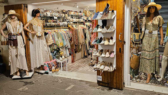 Kann man in den vielen tollen Boutiquen von Ibiza Stadt erstehen. Ist zwar nicht ganz billig, aber dafür bekommt man auch exquisite Stücke, die zuhause sicher niemand hat :-). Als angenehm haben wir empfunden, das man sich ungestört umsehen kann, ohne das man gleich angequatscht wird. Für ausgefallene Mode ist Ibiza sicherlich ein heißer Tip.
