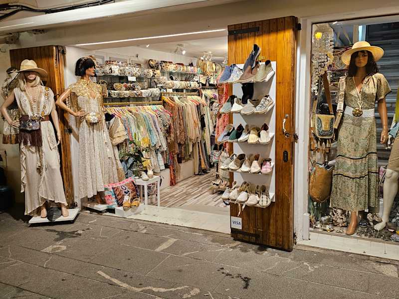 Da ich weder Extravagantes noch Designerstücke suchte, sondern einzig ein paar nette dünne T-Shirts (hatte für das tolle Wetter nicht genug „Leichtes“ mitgenommen), machte ich mich auf die Suche nach den üblichen „Verdächtigen“ = Ketten, die man sowohl bei uns als auch in anderen europäischen Ländern in der Regel findet. Und ich habe sie gefunden: „Mango“ liegt direkt am Hafen gegenüber dem Seemannsdenkmal, „Benetton“ in der Geschäftsstraße „Bartomeu Roselló“ und „Zara“ in einer der dortigen Seitenstraßen. Wer Zara nicht findet, kann im Geschäft „Zara Home“ in der Straße Bartomeu Roselló nachfragen. Hab ich auch getan. Natürlich bin ich in den drei Geschäften fündig geworden, womit sich das Waschen im Hotel erledigt hatte. Und demzufolge - volle Zufriedenheit mit den Shopping-Möglichkeiten in Eivissa. :-) Die Preise lagen – wie auf Mallorca oder anderen spanischen Inseln – bei Mango und Zara etwas unter den Preisen in Deutschland.