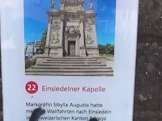 Als Grund für den Bau der Kapelle - einer Nachbildung der Gnadenkapelle in Maria Einsiedeln im Kanton Schwyz/ Schweiz - wird der Dank für den geschlossenen Rastatter Frieden und die Erlangung der Sprache des Erbprinzen vermutet. Die Kapelle wurde von der Markgräfin im 18. Jahrhundert gestiftet. Leider war die Kapelle geschlossen. Die Fassade ist allerdings auf jeden Fall sehenswert.