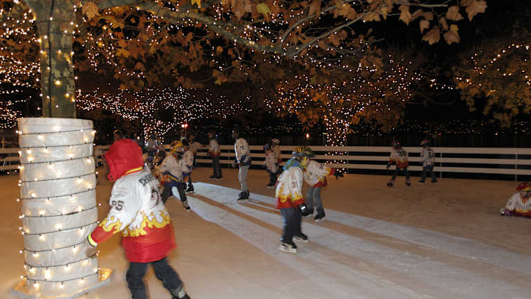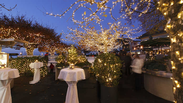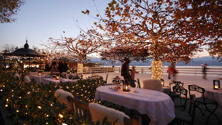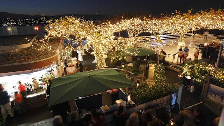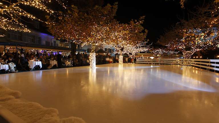 «Live on Ice Küsnacht» Die romantische Eisbahn am Zürichsee Eislaufen, Hand in Hand, mit Blick auf den See und im romantisch beleuchteten Garten Glühwein trinken und sich aufwärmen. Damit sollte das Romantik Seehotel Sonne in Küsnacht seinem Namen richtig gerecht werden: Das Gartenrestaurant direkt am Zürichsee wurde vor drei Jahren erstmals zur Eisbahn umfunktioniert und durch den Lichtkünstler Gerry Hofstetter in eine zauberhafte Wintermärchenwelt verwandelt. Heute ist «Live on Ice Küsnacht» ein winterlicher Treffpunkt für Familien und Geschäftsleute. Neben ungezwungenen Apéros direkt am Eisfeld mit Glühwein, Champagner und einem Säckchen feine Maroni ist auch ein edles Dinner direkt im Hotel Sonne möglich. Wer sich selber sportlich betätigen will, kann einige Runden auf dem rund 200 Quadratmeter grossen Eisfeld drehen, Schlittschuhe können direkt vor Ort gemietet werden. Wer sich auf den wackligen Kufen unsicher fühlt, schaut sich das Ganze aus sicherer Entfernung und eingehüllt in warme Decken an. Das Eisfeld ist in Betrieb vom 10. November 2013 bis 23. Februar 2014.
