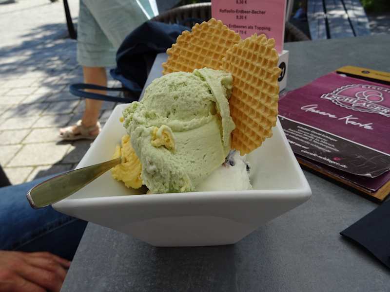Das Eiscafé Schlager befindet sich zentral in Rheinstetten an einem kleinen Platz. Sehr nette Bedienung. Hier gibt es neben klassischen Eissorten auch ein paar Sorten, welche man nicht überall findet - wie z.B. Bitterschokolade, Quark-Holunder, Milchreis und Himbeer-Zitrone. Uns hat das Eis prima geschmeckt - können wir sehr gerne weiterempfehlen.