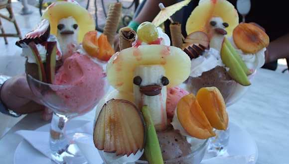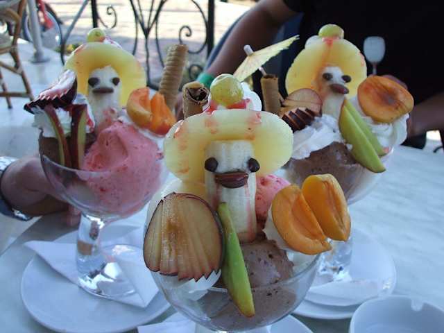 Die große Eisdiele in Sousse an der Hauptstrasse nach Port el Kantaoui ist auf jeden Fall einen (oder mehrere) Besuche wert.Dort gibt es richtig gute Eisbecher ,Waffeleis + köstlichen Kuchen! Die Bedienung super nett , hilfsbereit auch wenn man in einer größeren Gruppe kommt und beliebt auch bei den Einheimischen. Hinweis/Insider-Tipp: Öfter's Großbildleinwand zu bestimmten Anlässe.z.B.Fußball Ausstattung: mit Terrasse / Garten / kinderfreundlich / mit Live Musik