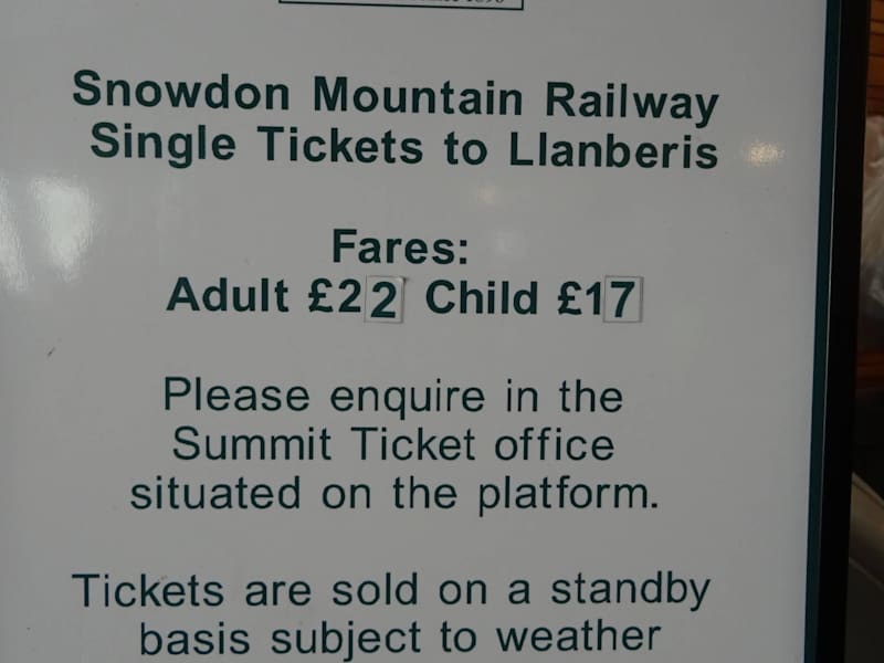In LLanberis findet Ihr eine alte Zahnradeisenbahn, die auf den Berg Snowdon in 1085 Meter Höhe schnauft. Es werden 4 Züge eingesetzt, sie bestehen aus einem Wagen und der Lok. 2 werden von Dampfloks, zwei von Dieselloks geschoben, der Wagen immer vor der Lok bergauf. Wir sind mit der Dieselbahn gefahren, denn die Preise sind sehr hoch, Dampf 38 Pfund, Diesel 29 Pfund. Wenn Ihr die Diesel Variante wählt laßt euch Karten für die Sektion A geben, da sitzt Ihr direkt hinter dem Fahrer und nicht wie die Hühner auf der Stange. Die Fahrt zur Bergstation dauert 60 Minuten, oben angekommen kann man wandern oder nach 30 Minuten wieder zurück fahren, die einfache Fahrt kostet 22 Pfund ( eine Richtung ) Für Liebhaber alter Esenbahnen ein Muß,