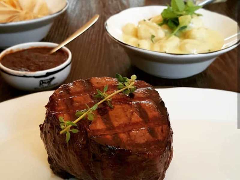 Im stilvollen Ambiente im Grazer Landhaus wird das Steakessen zum eindrucksvollen Gesamterlebnis. Die klassische Beef Tatar-Variante wird mit Butter, Zwiebeln und Kapern optisch sehr ansprechend an den Tisch gebracht. Das unglaublich fein abgeschmeckte, köstliche Tartar vom Premium Rind ist sehr gut mariniert und bildet mit dem getoasteten Brot, den Zwiebeln und der Butter den perfekte Start für ein Dinner. Die Entscheidung fiel beim Hauptgang auf ein Argentinisches Bife de Lomo mit Trüffel-Gnocchi als Side. Puristisch auf dem Teller thront das meisterhaft gegrillte Medium-Steak. Außen ein knuspriges Röstaroma, im Inneren hervorragend saftig und unglaublich zart. Die fantastisch cremigen Trüffel-Gnocchi erwiesen sich als perfekte Begleitung. Definitiv die beste Steak-Adresse der Steiermark!