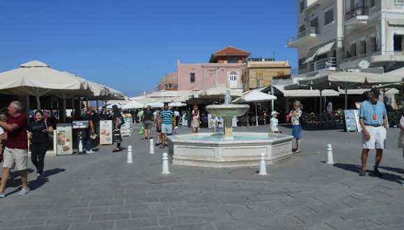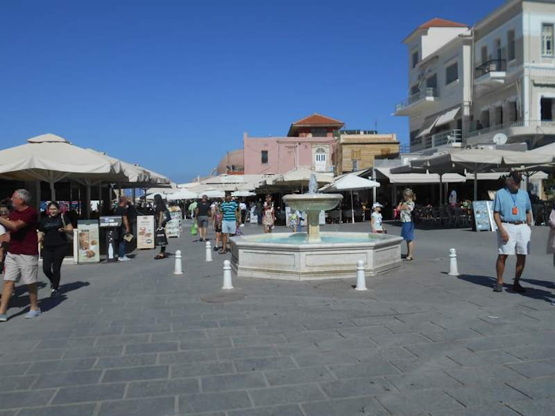 Der heute nach dem Politiker Eleftherios Venizelos benannte Platz an der südöstlichen Ecke des Hafenbeckens hieß früher Santrivani-Platz (übersetzt „Brunnen“). Dort stand ein kleiner Marmorbrunnen, der mit Löwenköpfen und dem venezianischen Wappen geschmückt war und sich heute im Archäologischen Museum von Chania befindet. An Stelle des Originals wurde ein anderer Marmorbrunnen an dem sehr belebten Platz aufgestellt.