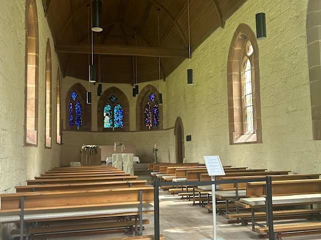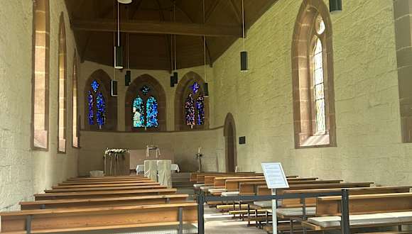 Im Kurpark und Sonntags zufällig geöffnet. Im Innerem angenehm kühl und mit schönem Glasfenster in blau und grün. Die Kirche wurde für die englische Kurgäste erbaut, die bis zum ersten Weltkrieg nach Bad Wildbad kamen.