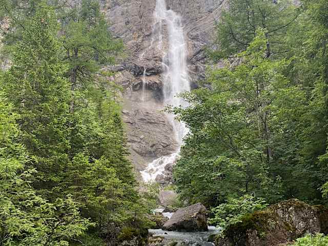 Vom Hotel einfach zum Wasserfall wandern, teilweise schön am Bach entlang. Mit der Bahn oder zu Fuss auf die Alp