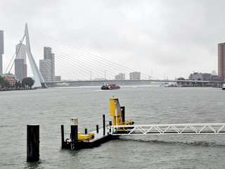 Die Erasmusbrücke ist eine Schrägseilbrücke in Rotterdam. Das Bauwerk befindet sich bei Rhein-Kilometer 1000,86 und ist die letzte Brücke, bevor diese bei Kilometer 46,17 und Rhein-Kilometer 1036,20 in der Nordsee endet.Das 802 Meter lange Bauwerk überspannt die Neue Maas mit einer 410 Meter langen asymmetrischen Schrägseilbrücke, die eine 278 Meter weite Hauptöffnung und einen weißen 139 Meter hohen angewinkelten Pylon hat. Vor allem bei Nacht macht sich die Brück traumhaft und lädt ein von einem zum anderen Ufer zu schlendern.