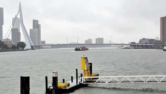Die "Erasmusbrug" überquert die die Nieuwe Maas und verbindet das Stadtzentrum von Rotterdam mit dem Wilhelminapier und dem Stadtteil Kop van Zuid. Die nach dem Theologen und Philosophen Erasmus von Rotterdam benannte Brücke wurde 1989 von dem Architekten Ben van Berkel entworfen und zwischen 1994 und 1996 erbaut. Es handelt sich um ein 802 Meter langes Brückenbauwerk mit einer 410 Meter langen asymmetrischen Schrägseilbrücke, die eine 278 Meter weite Hauptöffnung und einen weißen 139 Meter hohen angewinkelten Pylon hat. Dieser ähnelt einem Schwanenhals, weshalb die Brücke im Volksmund die Bezeichnung "de Zwaan (der Schwan)" erhielt. Ein 89 Meter langer Abschnitt an der Südseite der Erasmusbrücke kann aufgeklappt werden, so dass auch größere Schiffe passieren können. Die Brücke verfügt über zwei Fußgängerwege, zwei Radwege, zwei Autospuren und Straßenbahnschienen. Nachts wird Erasmusbrücke in bunten Farben beleuchtet.