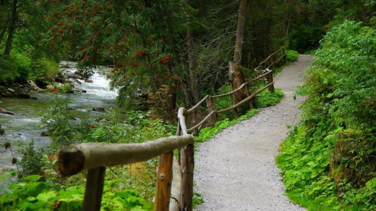 Schöner Spazierweg amn der Gerlos entlag es gibt viel zu entdecken von Kunst bis Kinderspielplatz