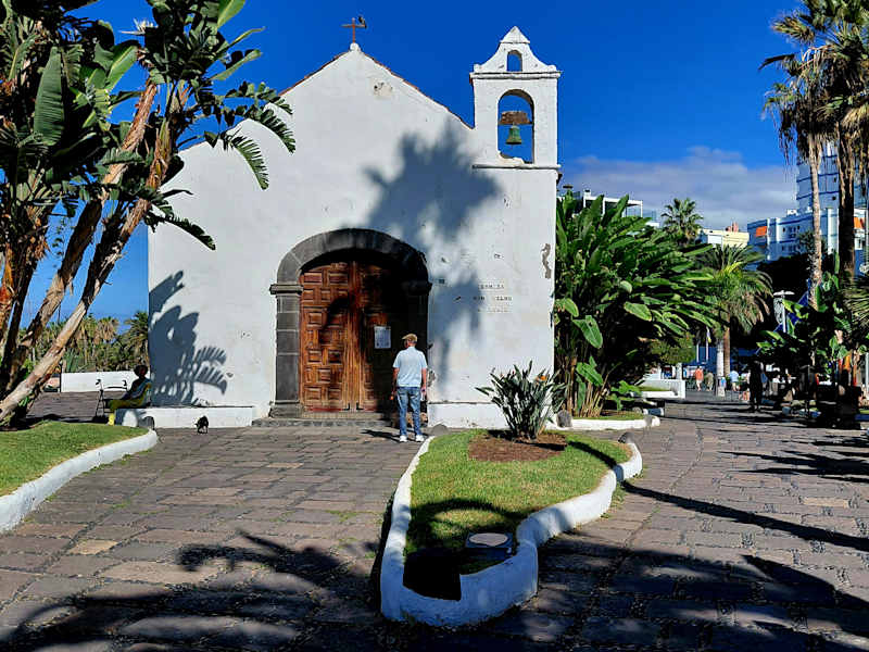 In schöner Lage befindet sich die Ermita de San Telmo, direkt an der Fußgänger- / Strandpromenade San Telmo. Ein Besuch der kleinen, schlichten Kirche lohnt sich, besonders wenn man sowieso hier vorbei kommt (eine Anreise, extra zu einer Besichtigung der Ermita de San Telmo, wäre aber wohl übertrieben). Aber man sollte schon respektvoll angezogen sein, wenn man in die kleine Kapelle gehen will, also nicht in Badekleidung und ähnlich. Hier werden teilweise auch Gottesdienste in deutscher Sprache abgehalten. Übrigens: mit etwas Glück kann man von hier (bei klarem Wetter) auch den Pico del Teide sehen, den mit 3718 Metern höchsten Berg Spaniens.