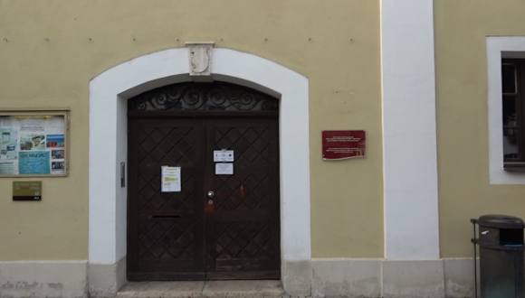 Das Gemeindezentrum liegt direkt neben der Stadtpfarrkirche. Früher standen hier Nebengebäude eines Gasthofs, in dem heute das evangelische Gemeindezentrum untergebracht ist.