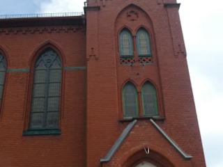Rote Backsteinkirche in der Schweizer Straße