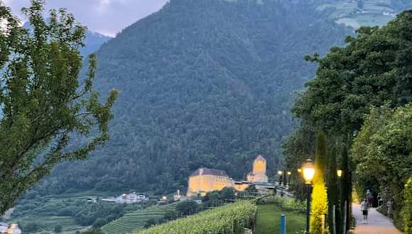 Die Falkner-Promenade bietet sich zu jeder Tageszeit als schöner Wander- weg mit Blick auf Meran und Richtung Vinschgau an.