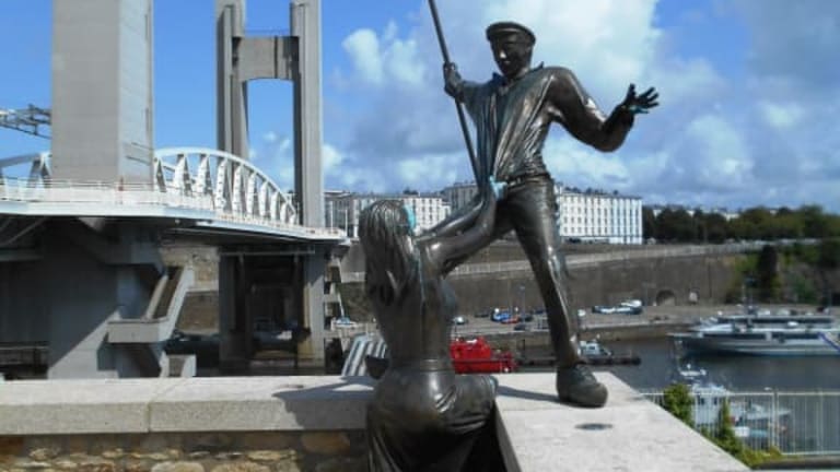 Fanny de Laninon und Jean Quéméneur sind zwei Figuren, die in der Kultur von Recouvrance verwurzelt sind. Dieser Stadtteil am rechten Ufer der Mündung des Penfeld gilt als eines der liebenswertesten Viertel von Brest. Dies ausdruckstarke Bronzeskulptur befindet sich am Eingang zu dem Stadtteil am Fuße der Pont de Recouvrance und soll gegenseitige Hilfe und Solidarität symbolisieren und wird als Bindeglied zwischen Vergangenheit, Gegenwart und Zukunft verstanden.