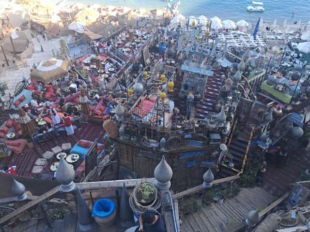 Es ist ein wunderschönes Plätzchen wie aus 1001 Nacht. Man hat einen wunderschönen Blick auf das Meer, Vorallem zur Zeit des Sonnenuntergangs und danach wunderschön und sehr romantisch. Der Service ist super und das Personal total nett! Es gibt gute Sisha allerlei Getränke und kleine Snacks. Wir haben den Abend sehr genossen !