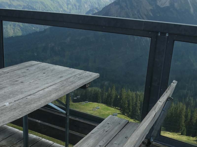 Das Fellhorn-Gipfel-Restaurant bietet sich für eine Pause an. Von der Terrasse des Gipfel-Restaurants hat man einen wunderbaren Ausblick auf die Bergwelt.